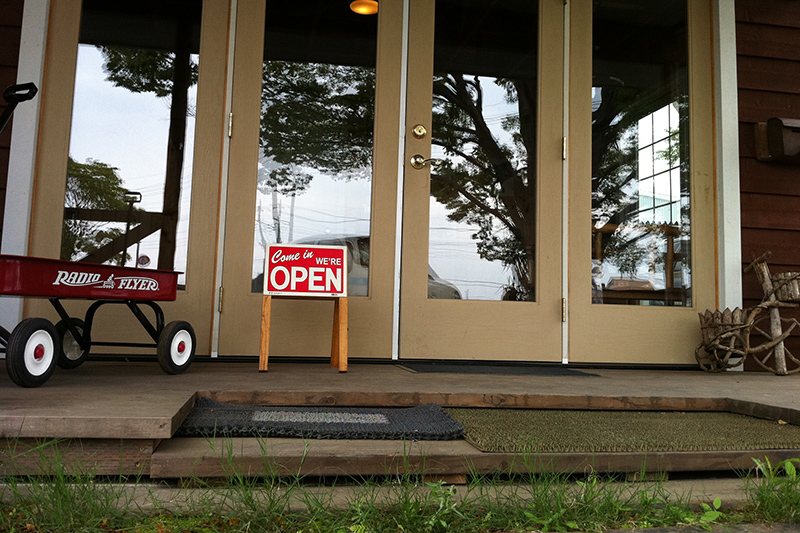 店舗はアメリカからコンテナで取り寄せた、無垢の木によるラップサイディングの建物で、よく喫茶店と間違えられる建物です。